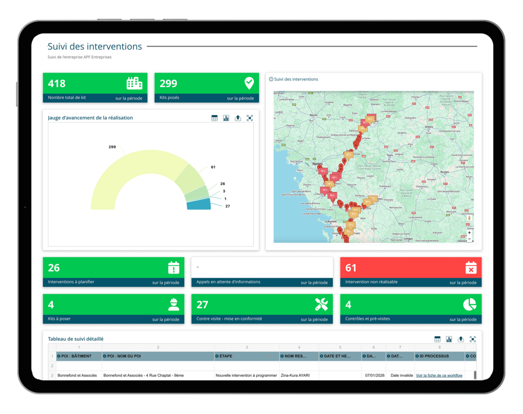 The space we created only displays the KPIs that the client wants: where do we stand in real time regarding interventions? Have there been any issues? Which quality indicators are on alert? What is the service completion rate at any given moment?